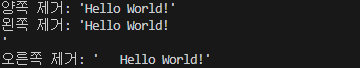 변수이름.lstrip(): 문자열 왼쪽 끝의 공백을 제거합니다.