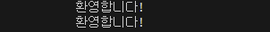 지정한 너비 안에서 텍스트를 가운데에 오도록 정렬하며 :^30 값을 넣을 공간을 30칸 확보하고, 그 안에서 값을 가운데로 정렬하라는 의미이며 "환영합니다!" 라는 문자를 포함하여 24칸을 확보하게 됩니다.