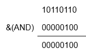 원본 데이터 10110110에서 2번 비트(오른쪽 0부터 세면 2번 비트, 10110110)가 1인지 확인하고 싶을 때 방법입니다.