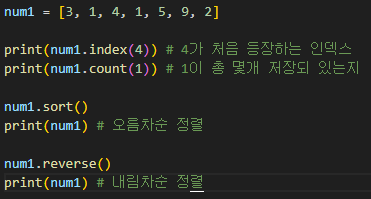 list.reverse() 리스트의 요소 순서를 역순으로 뒤집습니다.