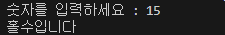 15라는 값을 넣었을 때는 홀수 값으로 판별하여 출력해줄 것입니다.