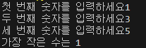 마찬가지로, max가 있으면 min이 있듯이 파이썬의 내장함수 min()을 사용한 출력 방법도 있습니다.