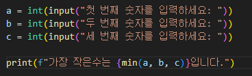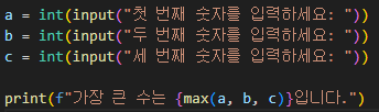 c = int(input("세 번째 숫자를 입력하세요: ")) # 세번째 정수 값을 입력 받을 함수(int형 변환)