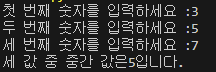 c= int(input("세 번째 숫자를 입력하세요 :")) #세 번째 값을 입력받을 함수(int형변환)