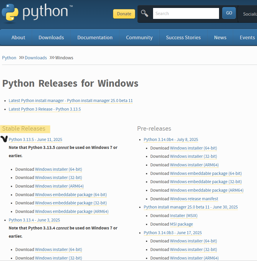 저희는 이 중에 두번째 방법을 활용할 것이고 Stable Release라고 써져있는 항목의 버전을 다운 받겠습니다.