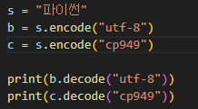b'\xed\x8c\x8c\xec\x9d\xb4\xec\x8d\xac', \xc6\xc4\xc0\xcc\xbd\xe3' 이렇게 바이트 열의 값이 '파이썬' 이라는 문자열로 변환 됩니다.