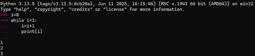 (i=0)i라는 변수에 0을 저장합니다. (while i<3 :)i가 3보다 작을(while)동안 i를 반복하겠다고 하고 i의 값이 커질 수 있도록