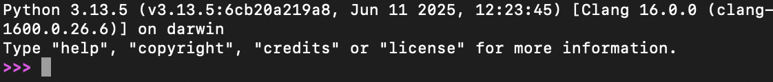 ②입력 후에 파이썬의 버전과 빌드정보가 뜨면서 windows와 마찬가지로 기초적인 실습준비가 완료됩니다