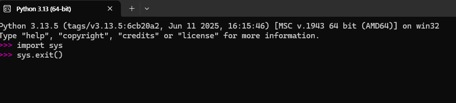 Ctrl+Z를 누르시고 엔터를 누르시던지, Ctrl+D(유닉스계열), 또는 내장함수인 quit(), exit(), 마지막으로 import sys를 입력하시고 sys.exit를 입력하시면 되겠습니다.